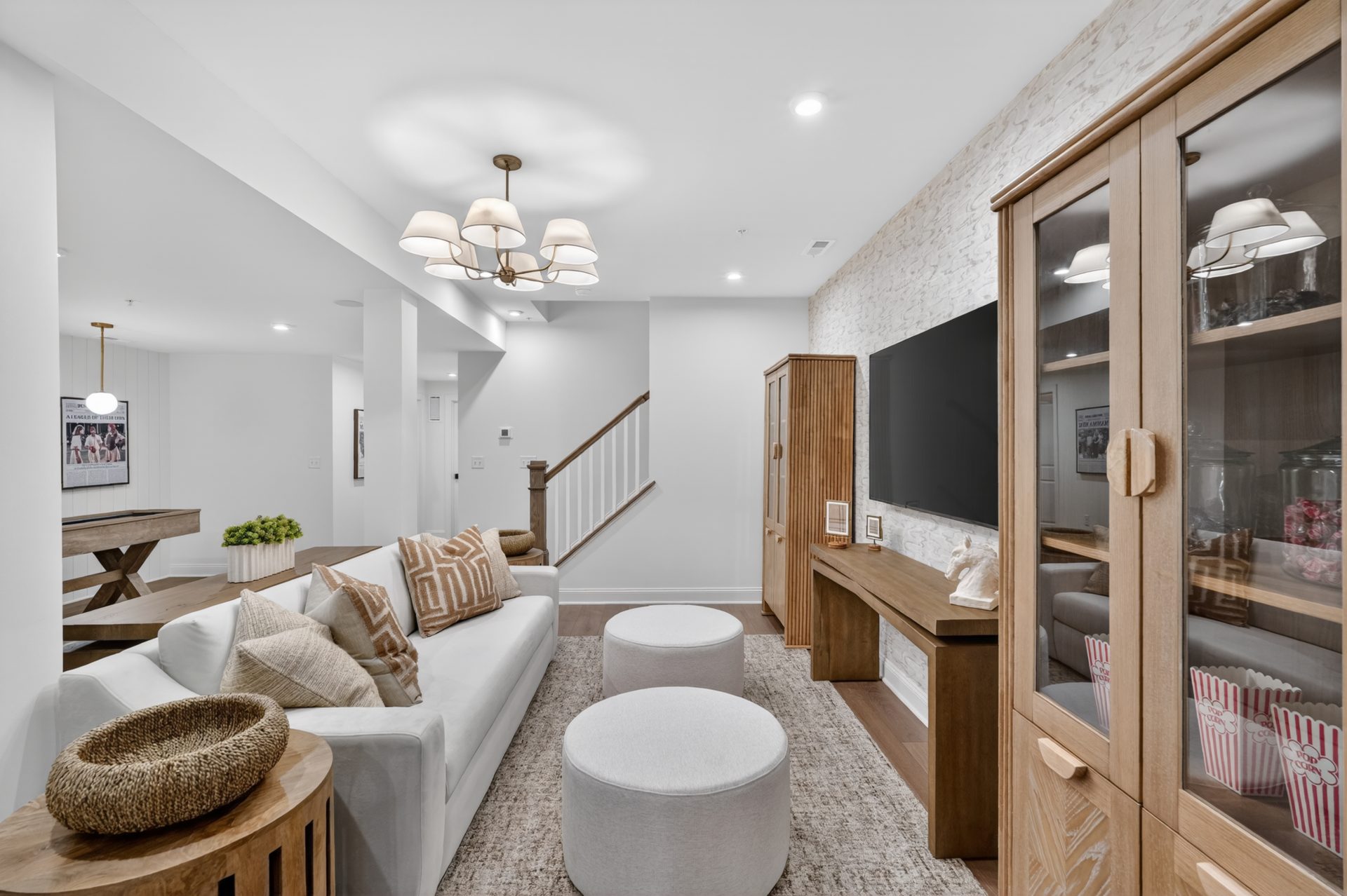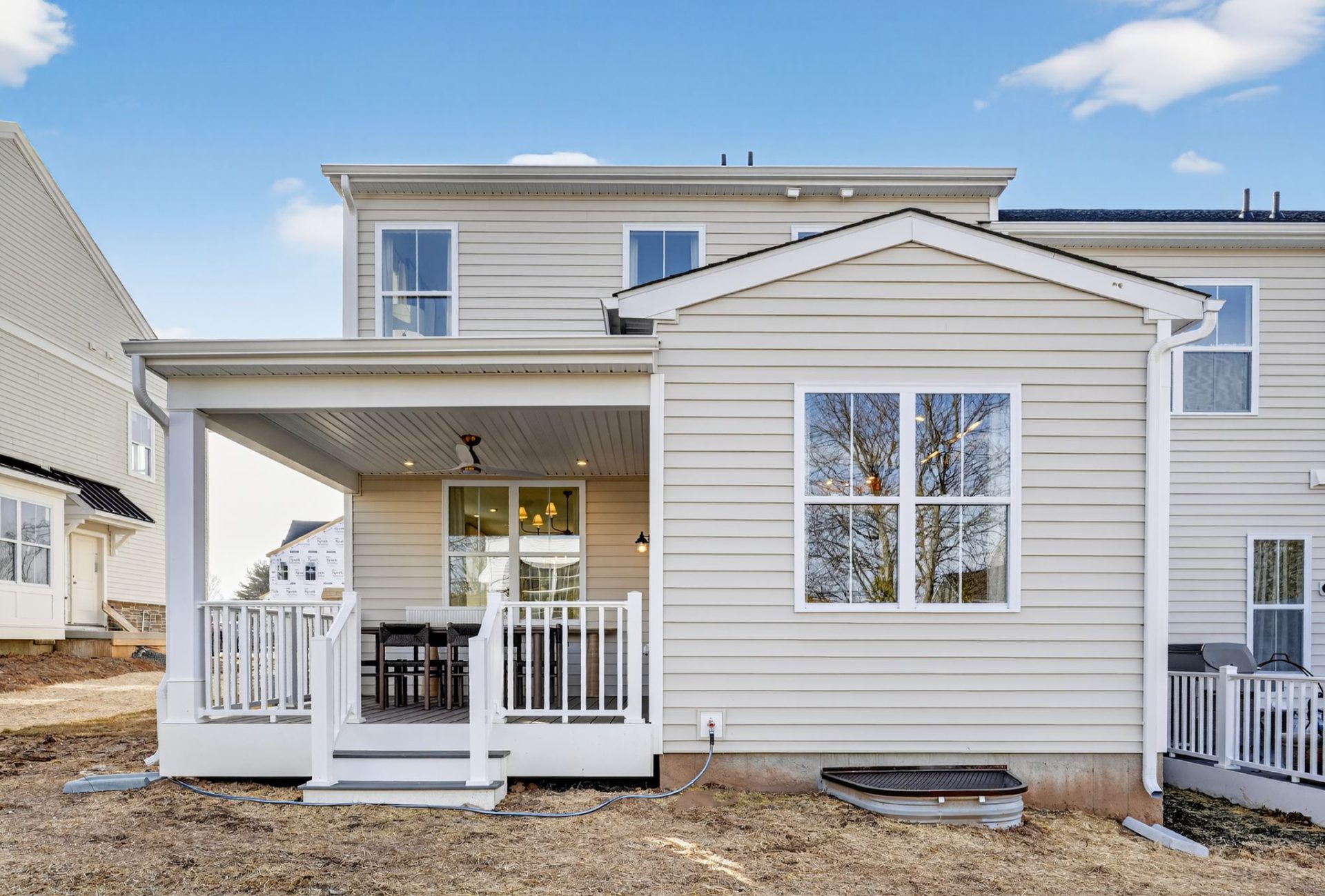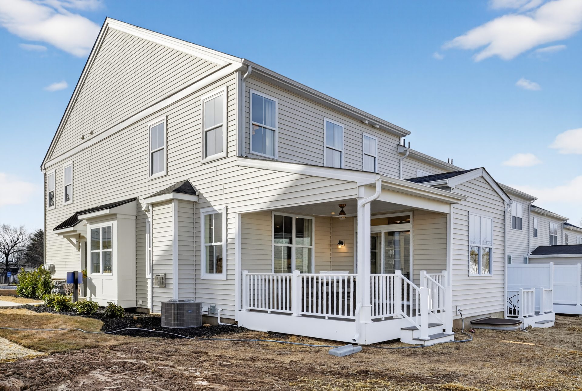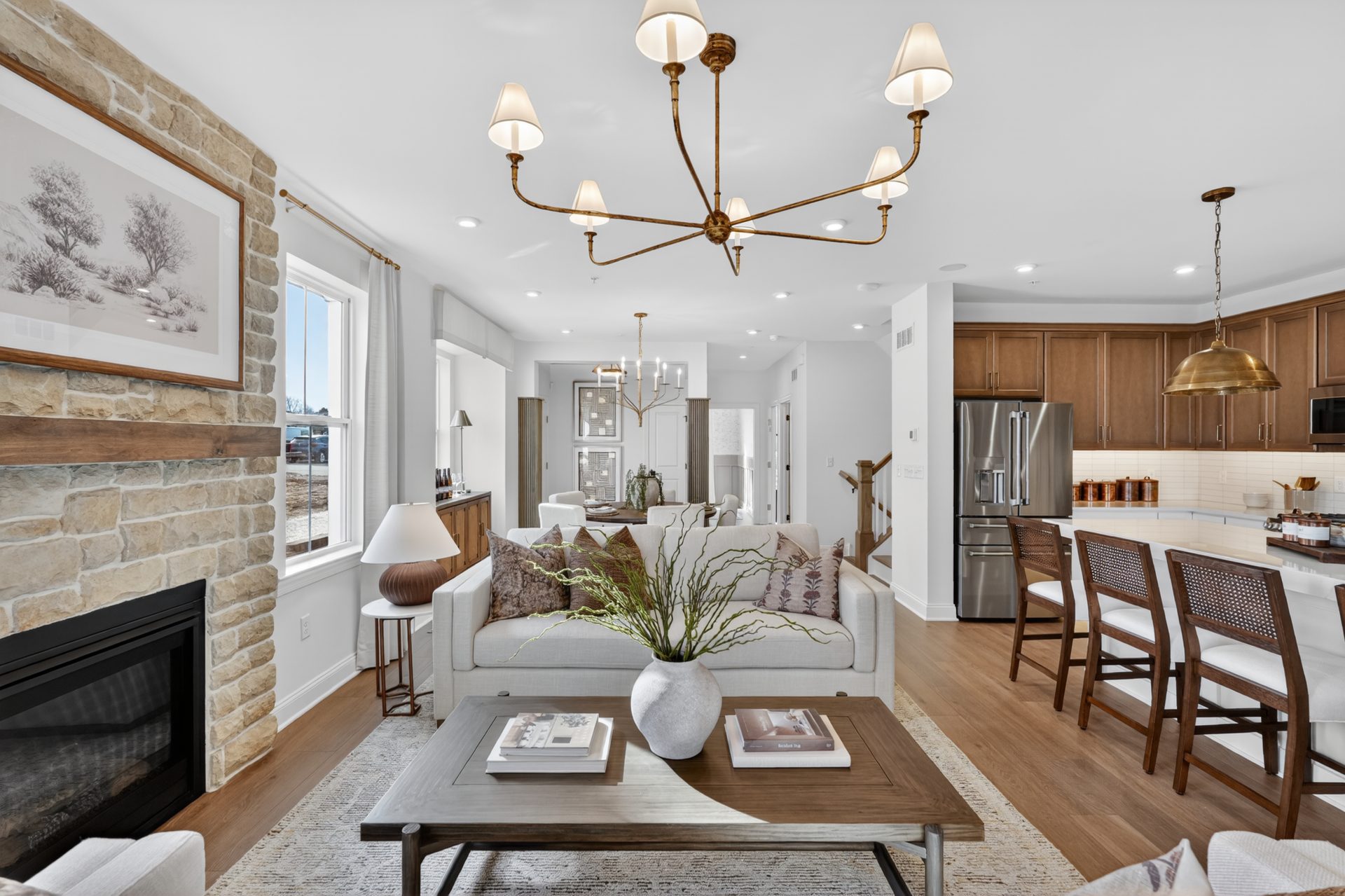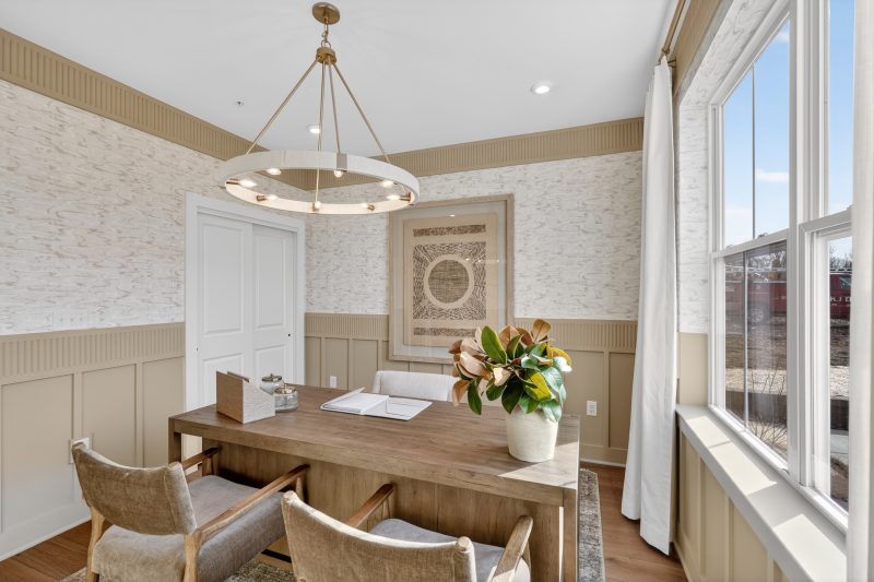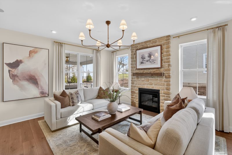 Step inside through the welcoming side entry to a warm and inviting foyer with hardwood flooring. The main level offers a spacious dining room, a versatile flex room, expansive great room, and stunning chef-inspired kitchen. Designed to be the perfect space for entertaining or everyday living, the kitchen features a show-stopping oversized island, premium Century furniture-grade cabinetry with 42″ uppers, GE stainless steel appliances, and hardwood flooring,. Upstairs, the luxurious owner’s suite offers a peaceful retreat, complete with volume ceilings, dual walk-in closets, and a spa-inspired en suite bath featuring a large walk-in shower and dual sink vanity. Two additional bedrooms, a full bathroom, and a convenient laundry room complete the second floor. The home also includes a full unfinished basement, ideal for storage or future expansion into additional living space.