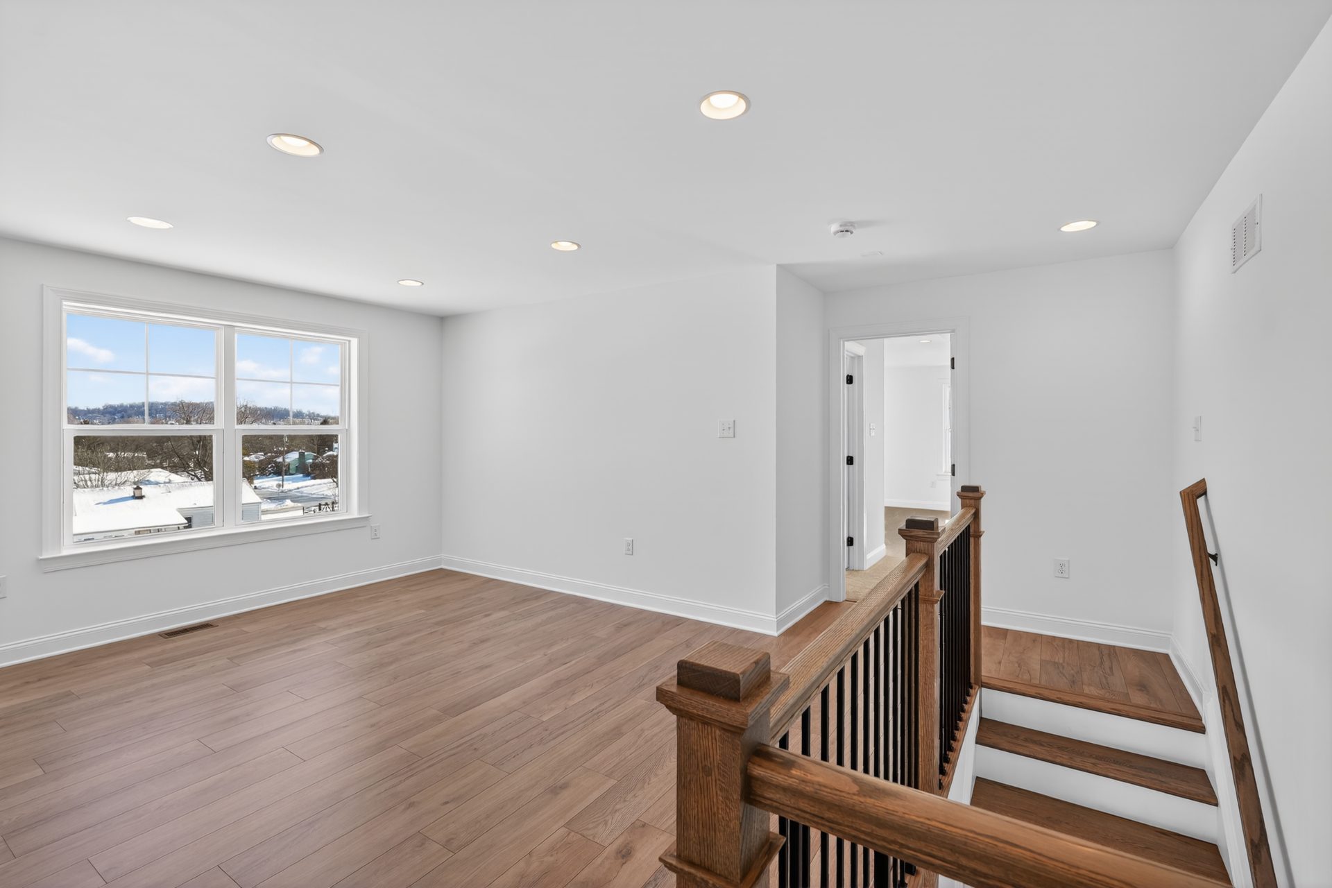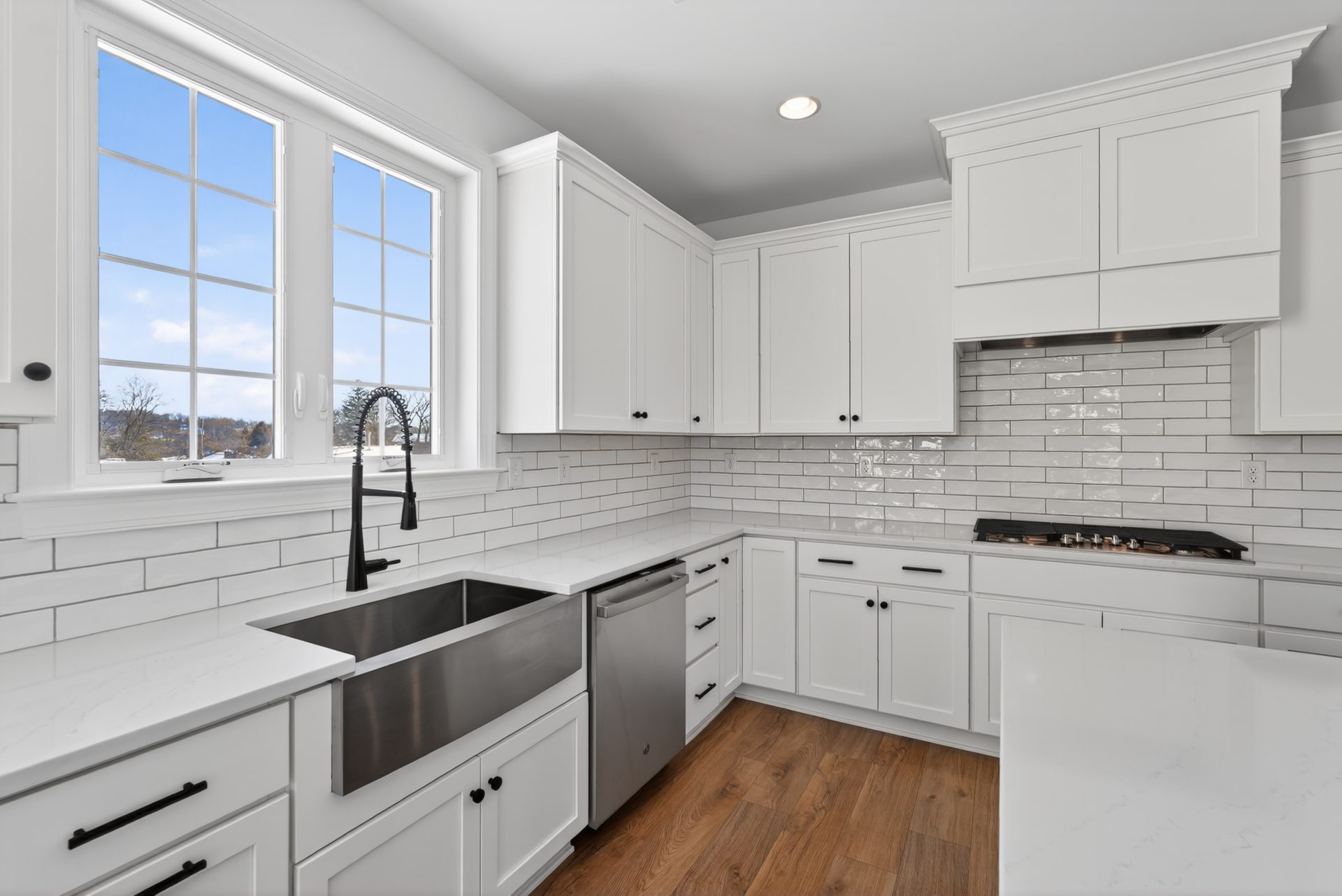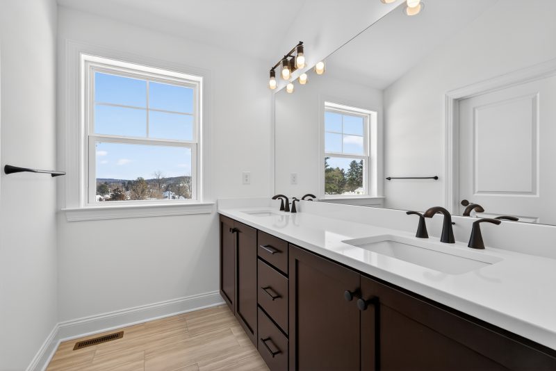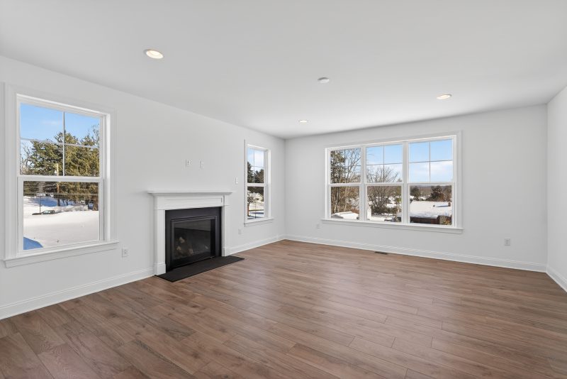 The Meadowood blends farmhouse curb appeal and a 2-car front-entry garage with over 2,900 sq. ft. of living space. Enjoy a brighter 4′-extended great room anchored by a 42″ direct-vent fireplace with Roxborough mantel. The kitchen is chef-ready with a concealed range hood, Elite island, and quartz countertops. Elevated finishes include hardwood flooring, oak stairs with iron balusters, and tray ceilings in the dining room and owner’s bedroom. The owner’s bath adds a tile shower pan and quartz, plus future-ready rough-in plumbing for a full bath in the unfinished basement and an Aprilaire humidifier—all professionally curated.