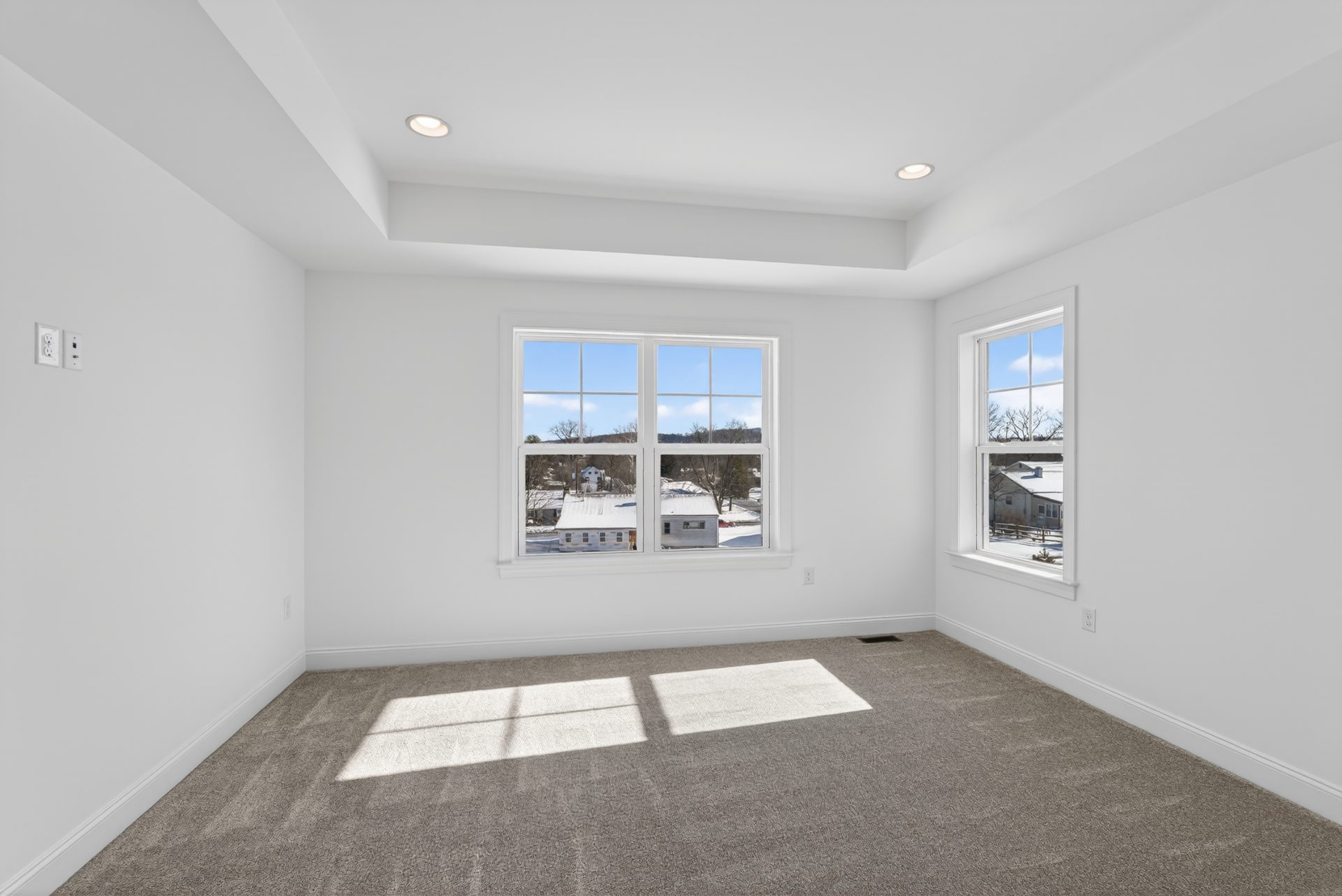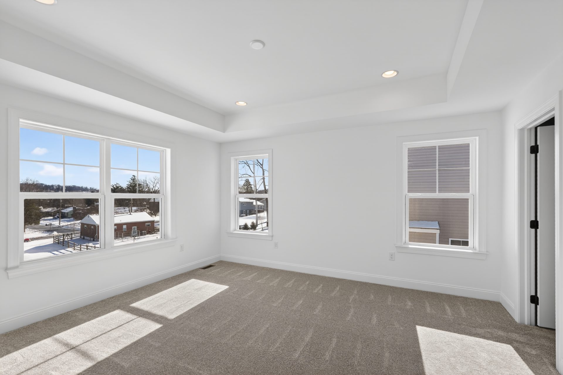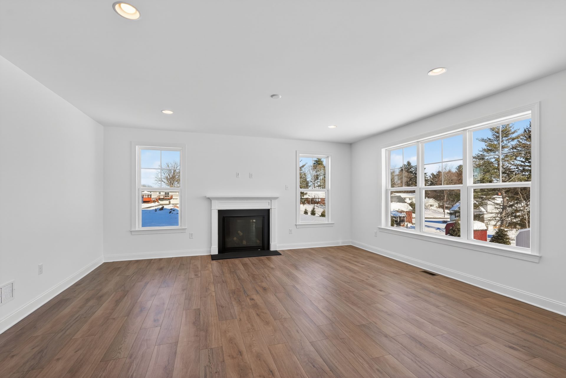 The Meadowood blends farmhouse curb appeal and a 2-car front-entry garage with over 2,900 sq. ft. of living space. Enjoy a brighter 4′-extended great room anchored by a 42″ direct-vent fireplace with Roxborough mantel. The kitchen is chef-ready with a concealed range hood, Elite island, and quartz countertops. Elevated finishes include hardwood flooring, oak stairs with iron balusters, and tray ceilings in the dining room and owner’s bedroom. The owner’s bath adds a tile shower pan and quartz, plus future-ready rough-in plumbing for a full bath in the unfinished basement and an Aprilaire humidifier—all professionally curated.